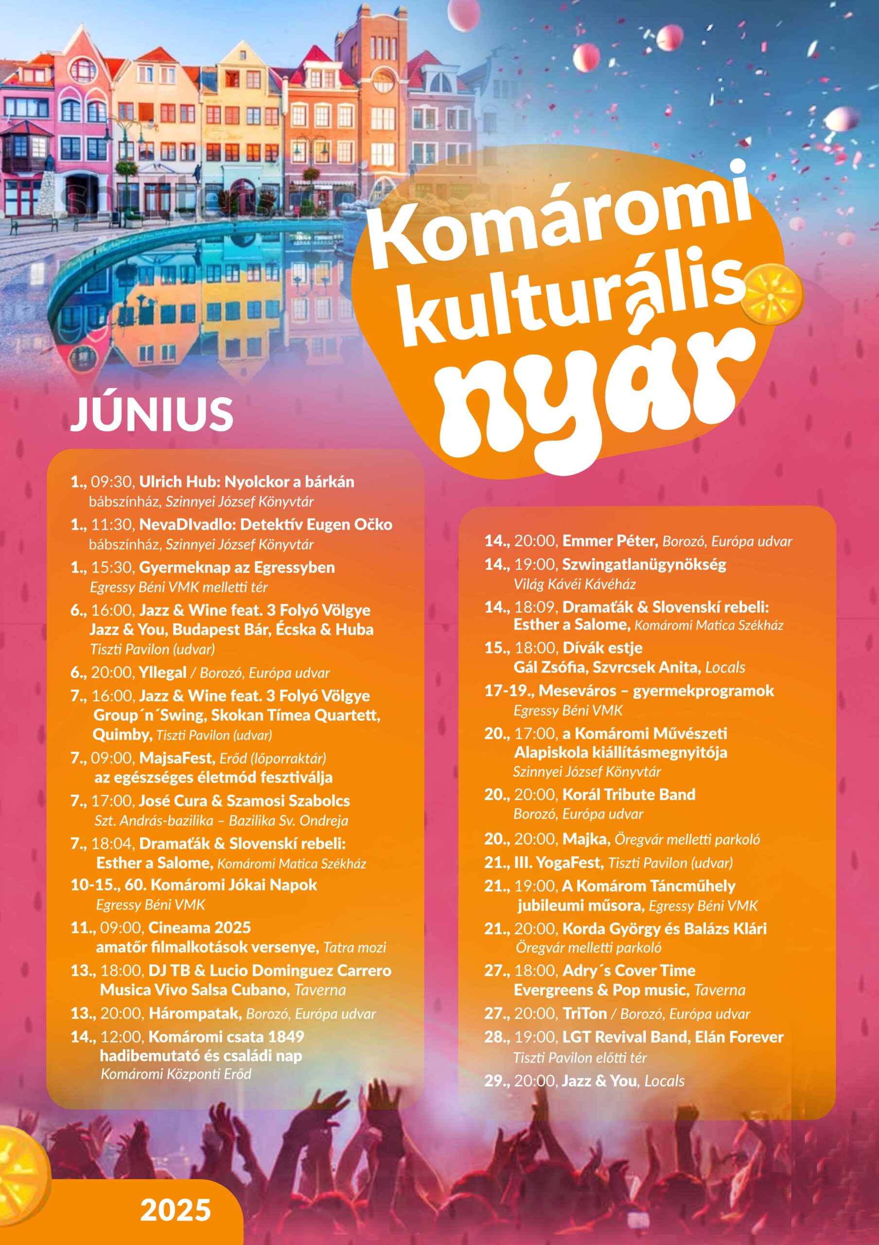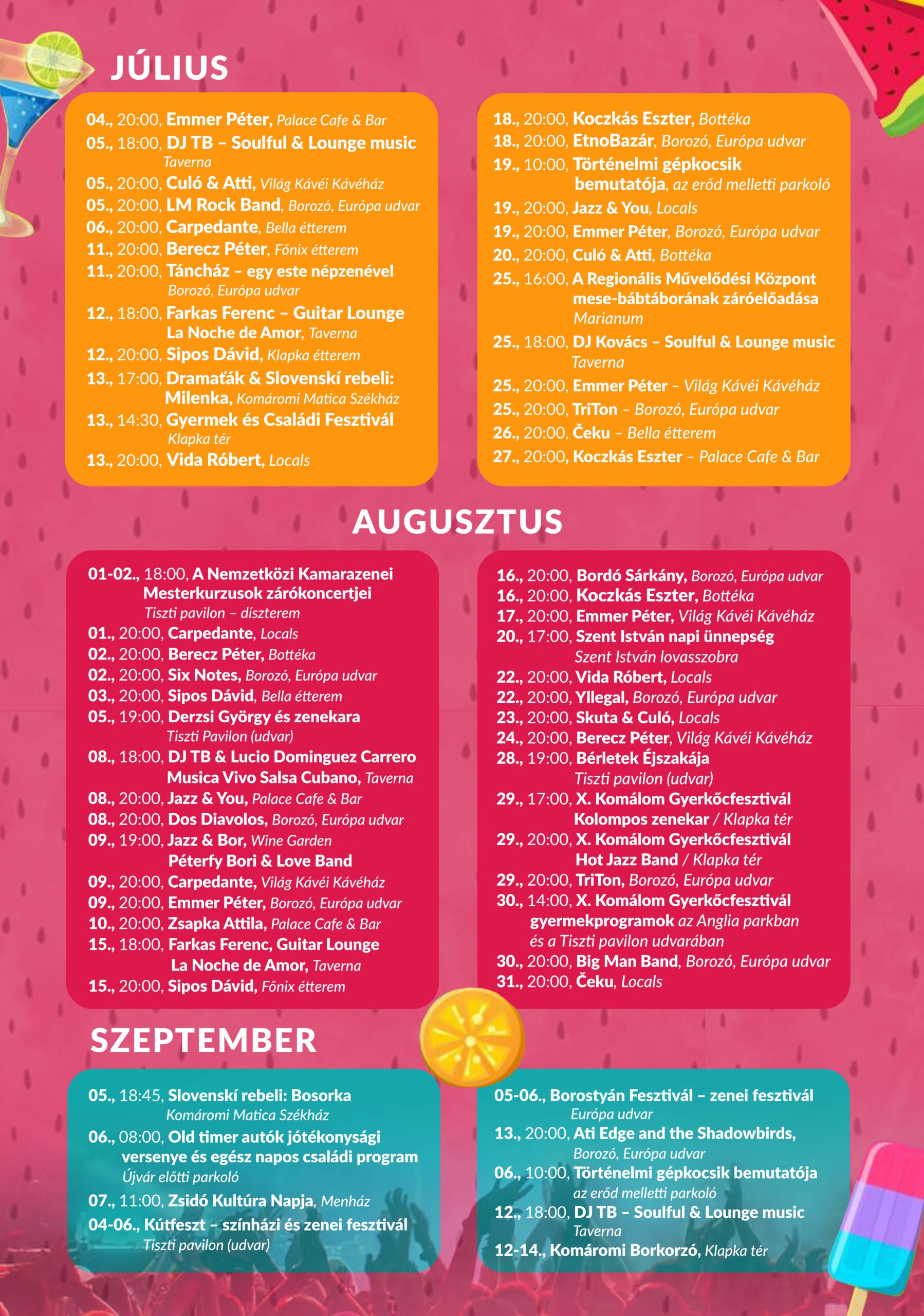A Komáromi Kulturális Nyár eseményeit lapunk Programajánló rovatában folyamatosan közöljük.