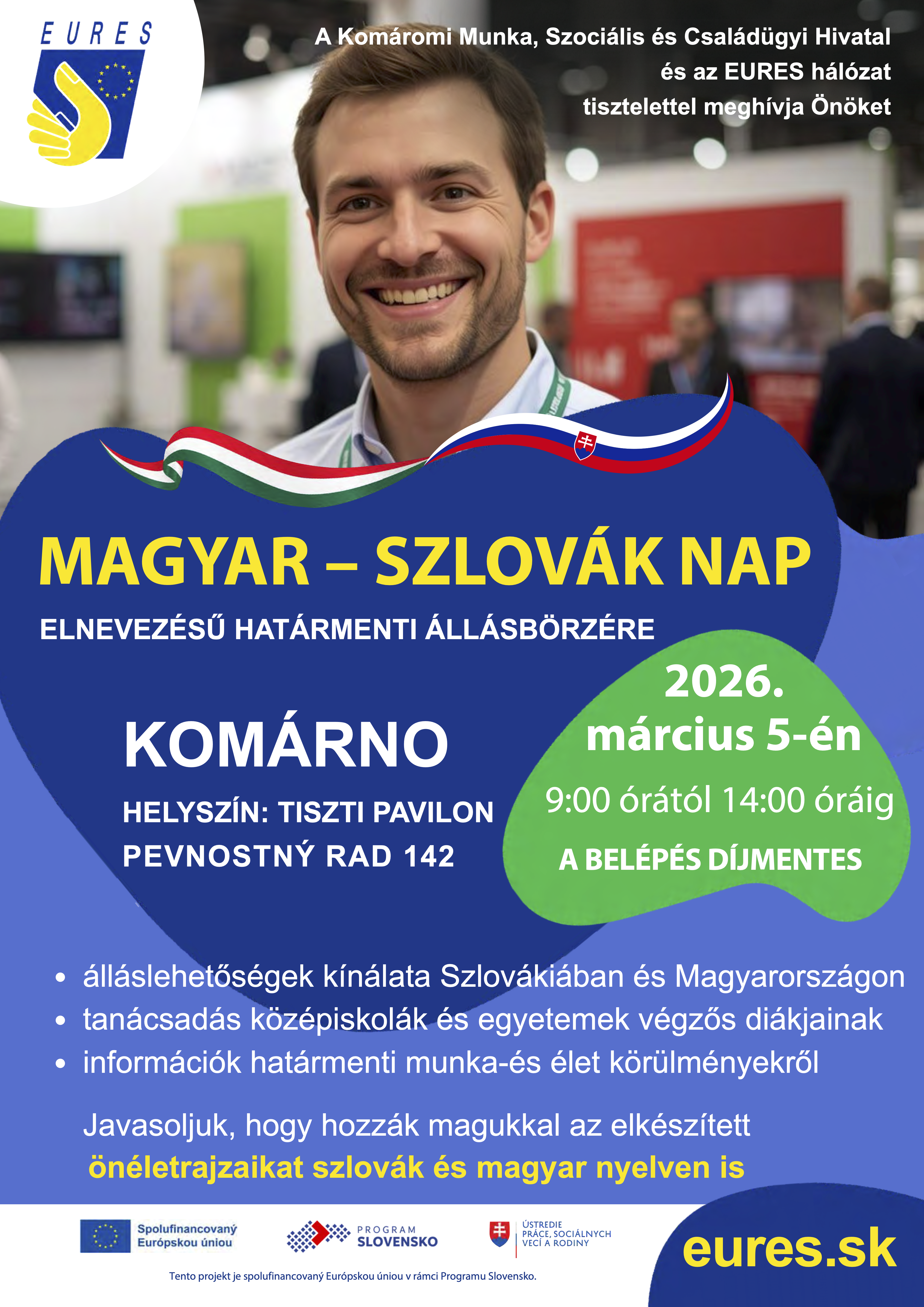 Több mint 500 szabad munkahely közül válogathatnak mindazok, akik március 5-én ellátogatnak a Komáromi Munka-, Szociális és Családügyi Hivatal, valamint az EURES hálózat által 10. alkalommal szervezett magyar-szlovák határ menti állásbörzére.