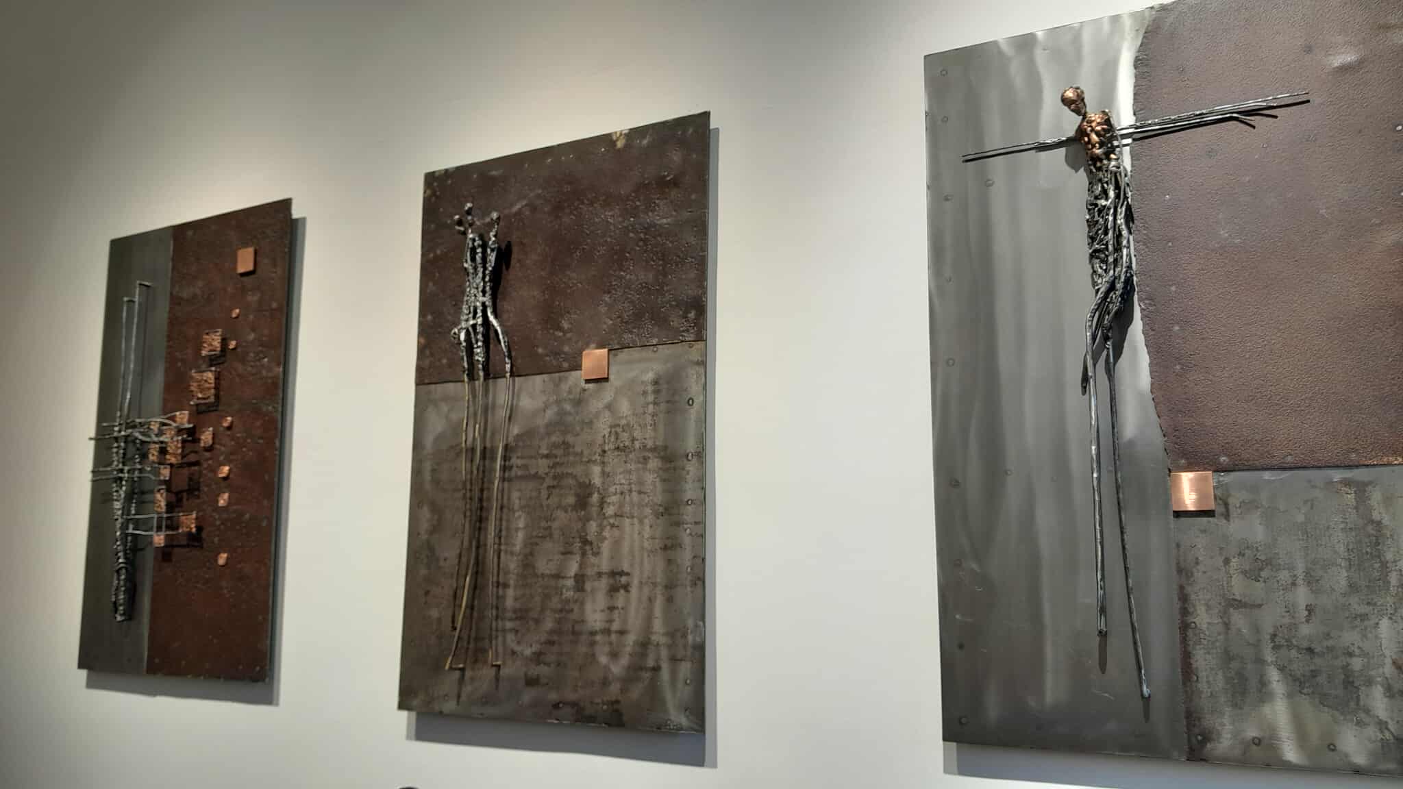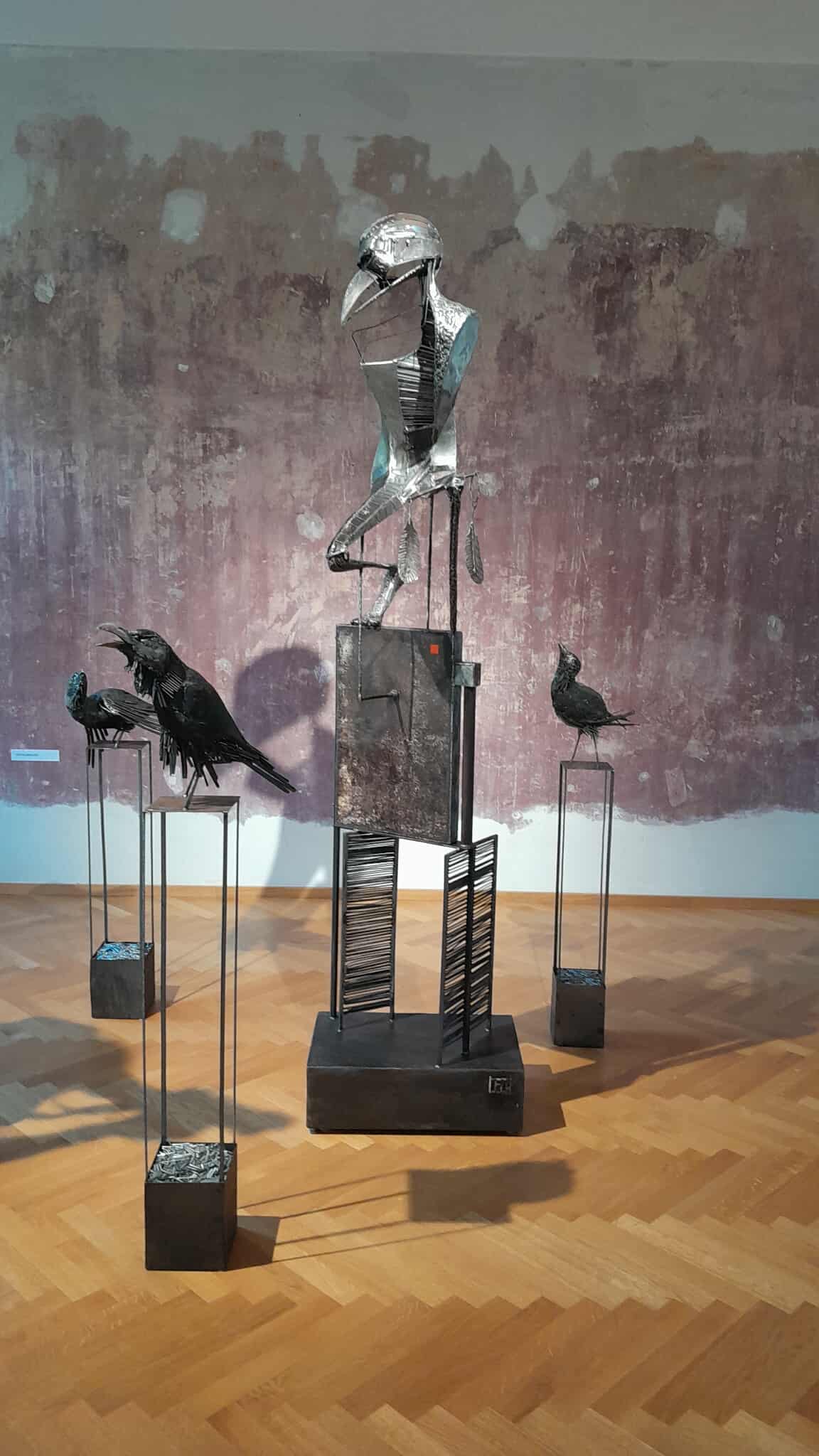A tárlat központi elemeit, melyek azonnal lenyűgözik a látogatót, rendkívül jó arányérzékkel helyezték el a galéria tereiben. A sok apró részletből építkező alkotásokról szinte lehetetlen elsőre lehántani minden réteget, hiszen a mondanivalójuk úgy épül egymásra, mint az emberiség és az emberi történelem fejlődése és örök ismétlődése.