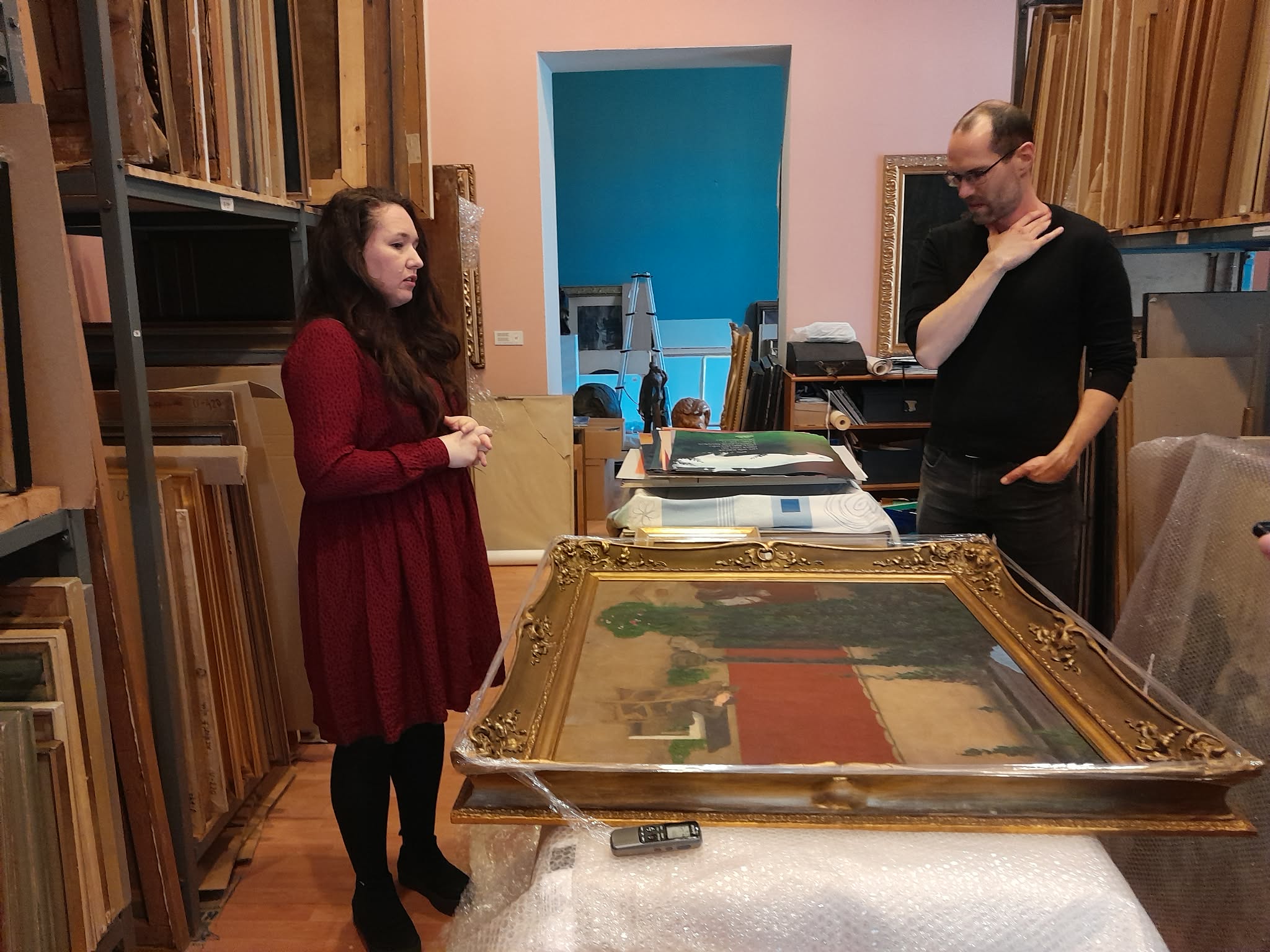 „A kép 1975-ben került a múzeum birtokába, Pöstyénből vásárolták meg 10 ezer koronáért. Összehasonlításképpen, abban az időben egy nyitrai háromszobás lakás ára 30 ezer korona körül mozgott. Bár a mű jelenlegi értéke minimum 100 ezer euró, korábban nem tulajdonítottak neki kiemelt jelentőséget, mivel a Ferenczy-képek árai viszonylag széles spektrumban mozognak” – tudtuk meg Szabó Bodó Renátától, a múzeum művészettörténészétől, aki 2025 tavaszán csatlakozott az intézmény szakmai csapatához. A festménynek, mivel a hátoldalán nem szerepelt felirat, Farkas Veronika 1975-ben a „Napsütötte délután” munkacímet adta. Ettől kezdve szerényen húzódott meg a múzeum állandó kiállításán. A fordulat 2011-2012-ben következett be, amikor a Magyar Nemzeti Galéria nagyszabású időszaki tárlatára kikölcsönözték a művet. A budapesti szakemberek akkor azt feltételezték, hogy a kép a híres „Vörös fal” sorozat elveszettnek hitt első darabja.